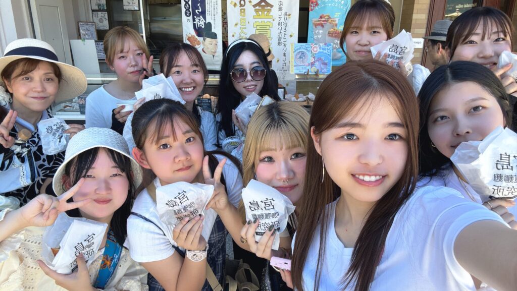 As part of the MUGLED program, we took the ferry to Miyajima, visited the famous Itsukushima Shrine, explored the aquarium, and enjoyed walking through the lively shopping street. We also had fun trying local food and browsing for souvenirs. Additionally, we held a farewell party for Momoko to celebrate her time with us.