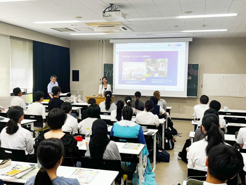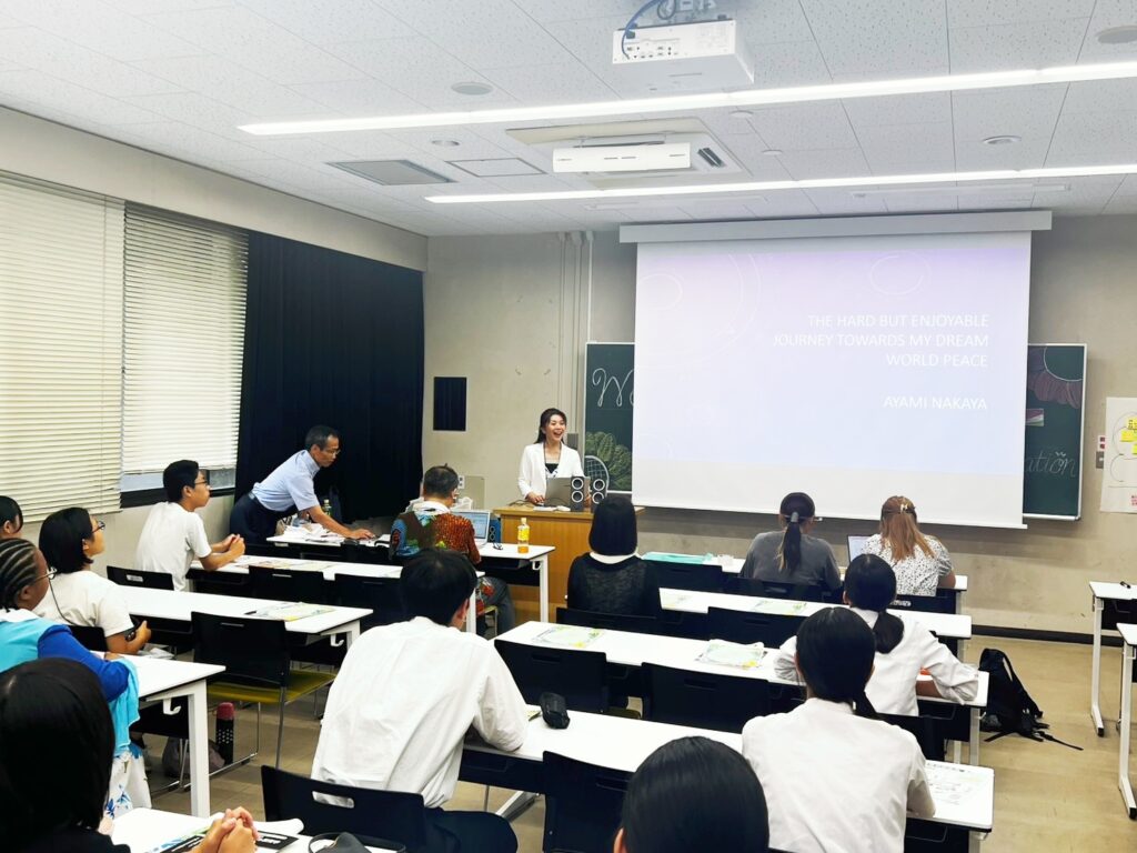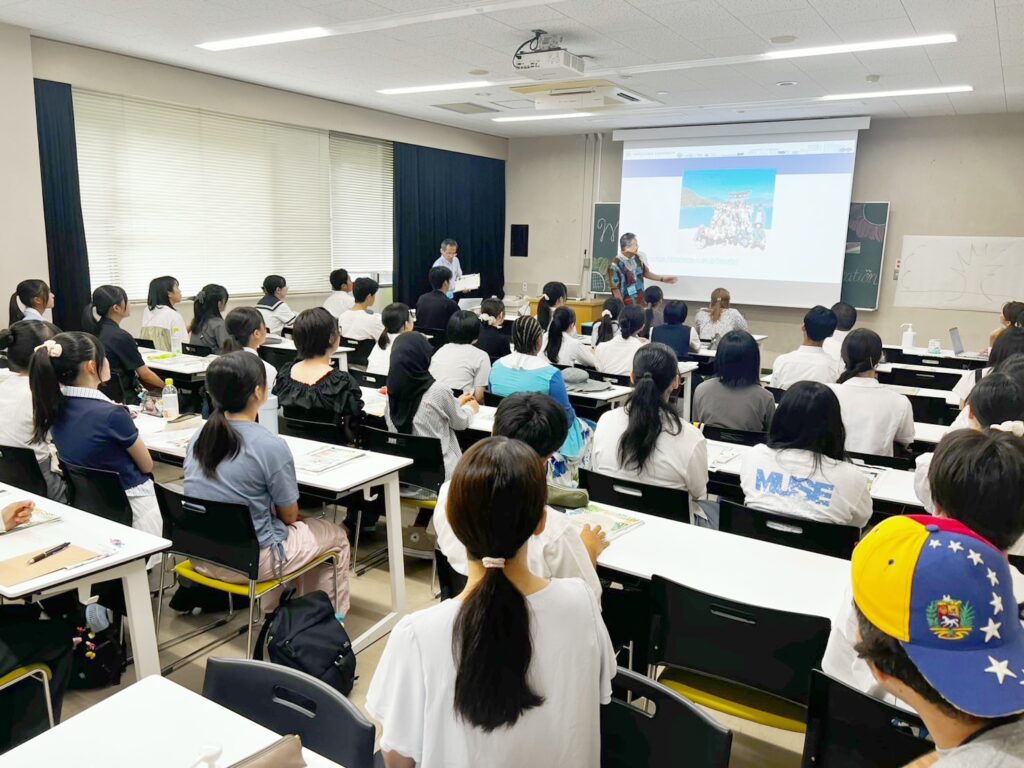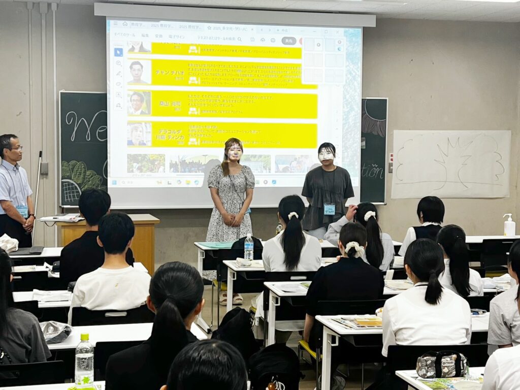 教員、在学生、留学生の紹介を行い、来年度の入学を希望する高校生の皆さんと一緒に楽しいアクティビティを行いながら、プログラムの内容についてもご説明しました。
